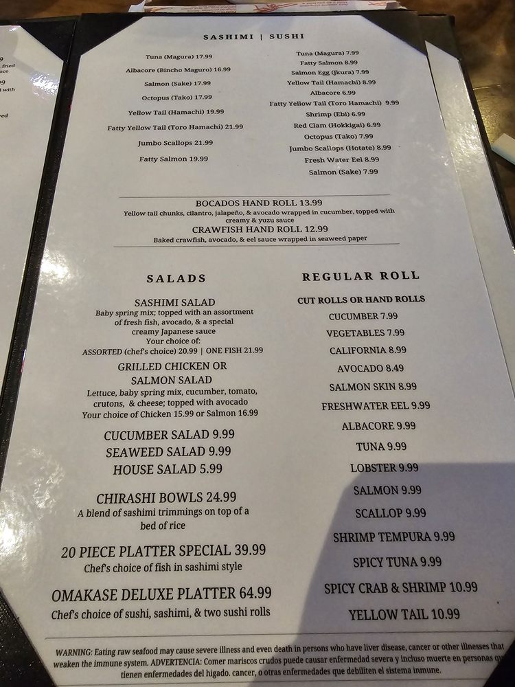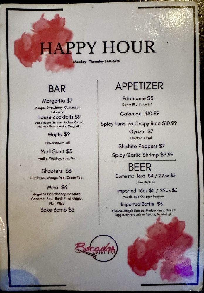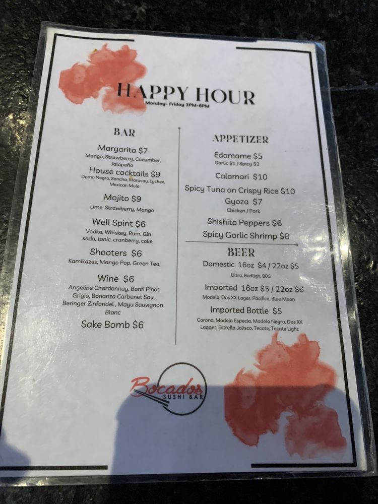 Customer reviews speak to the restaurant's welcoming atmosphere and excellent service. Many appreciate the innovative sushi rolls, such as the standout Bocaddos Roll, which infuses traditional Japanese favorites with fresh ingredients and unique sauces. Patrons have noted some challenges with sauce overwhelming the sushi, highlighting a preference for a more restrained approach. Overall, Bocados Sushi Bar invites guests to experience their exceptional culinary artistry in a laid-back setting.
